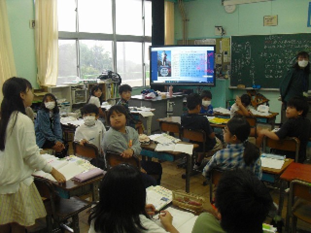 4年生の社会です。年表を見て、そこから分かることを文章で表現し、それを発表しています。