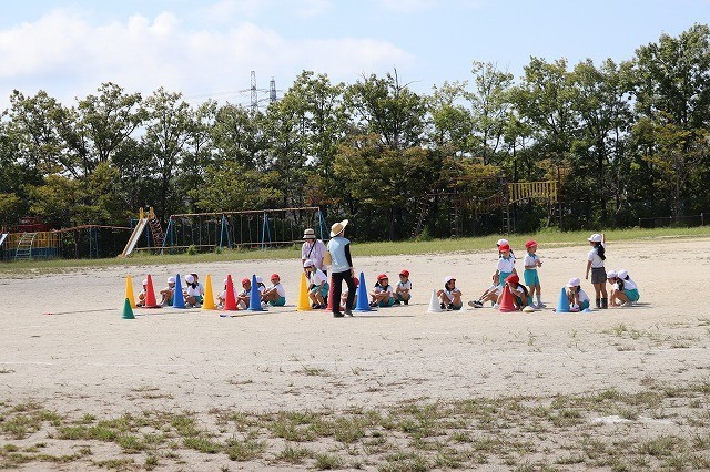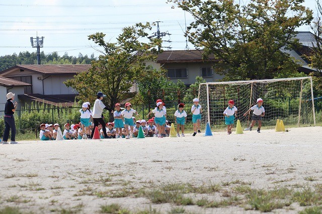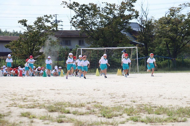 1年生が運動会の練習をしています。少し暑いですが、力一杯走っています。