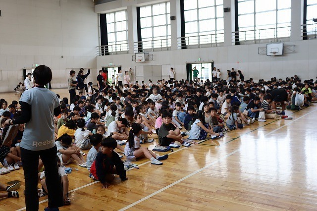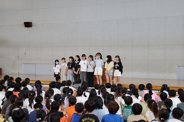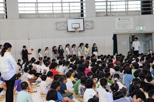 昼休みに全校集会が開催され任命式がありました。3枚目はバレーボール大会で3位を獲得したメンバーの紹介です。