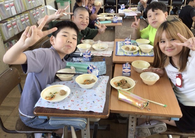 写真は4年生の給食です。野菜とツナのあえものは、たっぷりのツナと少し甘めの味つけで、とても人気のある野菜メニューです。今日も野菜をおいしく食べたよという声をたくさん聞きました!