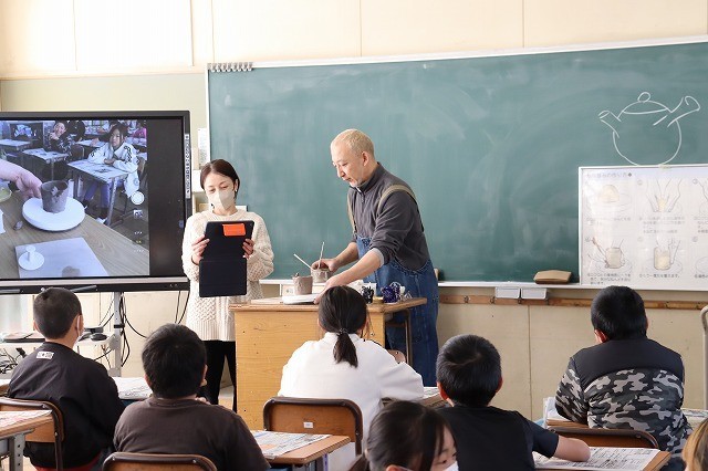 1,2枚目は4年生の陶芸教室です。3枚目は図工です。