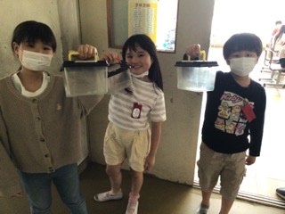生活「生きものを かおう」 生き物を捕まえて観察する準備をしました。