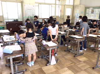ペアで今の気分を聞き合いました。 ジェスチャーを使って答えていました。