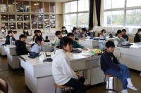梅ちぎりで収穫した梅を洗って、穴を開け、砂糖等と一緒にビン詰めをします。ジュースになるのは少し先です。