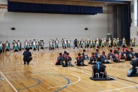 針金を使っての工作です。器用に扱う生徒もいてどんな形が出来るのか。体育の授業はBGMに合わせてのダンスです。