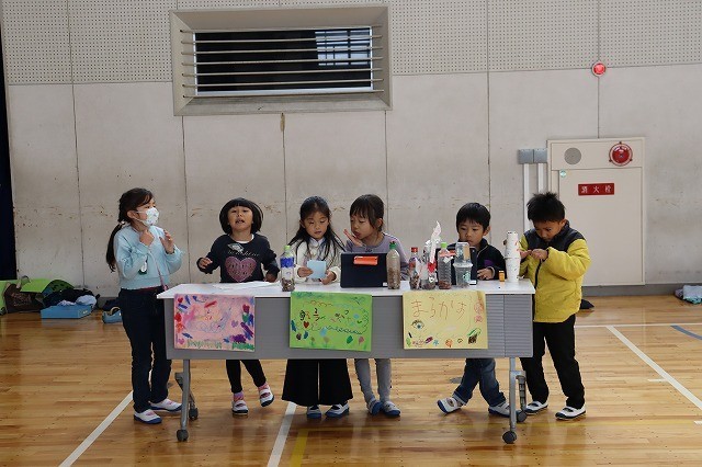 1年生の手作りゲームで園児と交流しました。