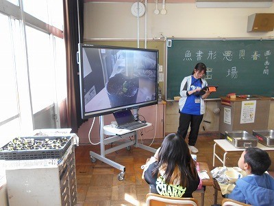 もぐもぐタイムの時間に、生活科で育てている大根の芽を定点カメラで録画した様子を見ていました。