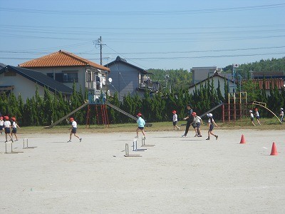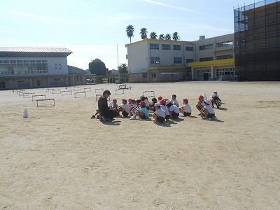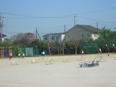 3年生の体育はハードル走を行っていました。リズム感を意識するために、スキップで鬼ごっこをして身体を動かしています。楽しそうな声がたくさん聞こえてきます。