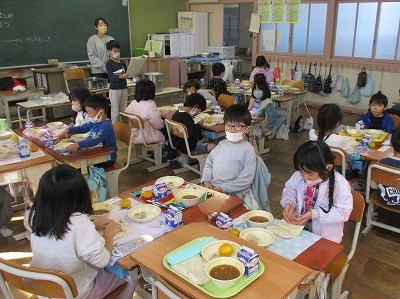 保護者の方に作っていただいたお弁当を、子供たちはとてもおいしそうに食べていました。