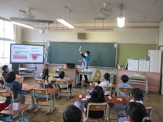 1・2年生は、市の歯科衛生士の方に、歯のみがき方を習いました。