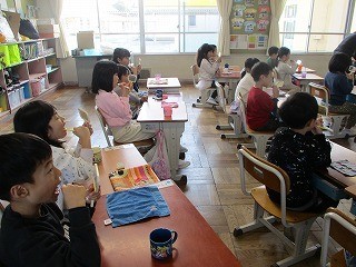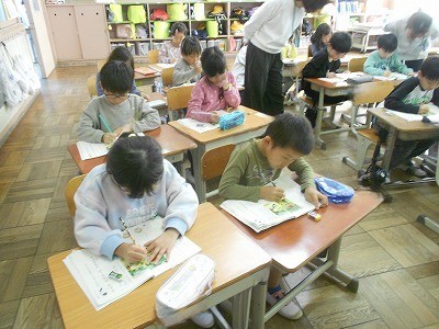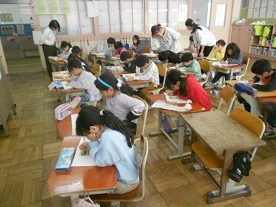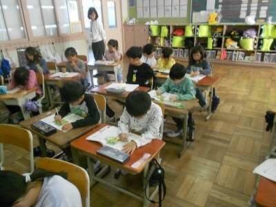 1年生の国語です。教科書にある絵を見て、オリジナルのお話を考えています。すごく真剣に考えることができました。ぜひお家でも、どんなお話を考えたのか聞いてみてください。
