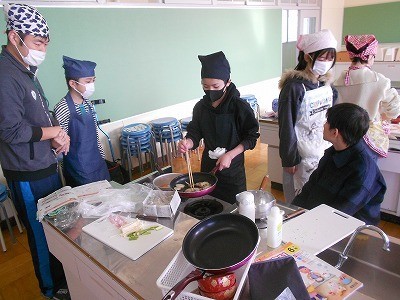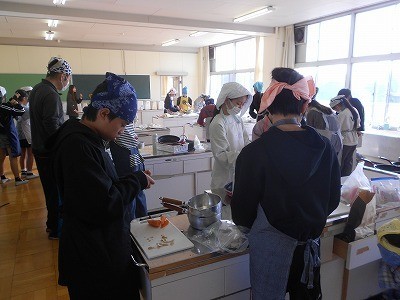 家庭科室からいい匂いがしてきました。見に行くと、6年生が調理実習をしていました。野菜のベーコン巻きやじゃがいもとベーコンの炒めものなど、自分で決めた一品を調理しています。楽しく美味しい調理実習でした。