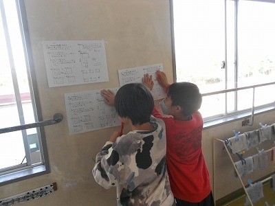 3年生は、算数の学習をしていました。分数やかけ算の筆算など学習内容がだんだんと難しくなってきましたが、一生懸命学習に取り組んでいます。