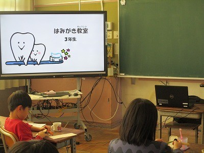4年生を対象に、知多市健康推進課の歯科衛生士さんによる「歯みがき指導」がありました。