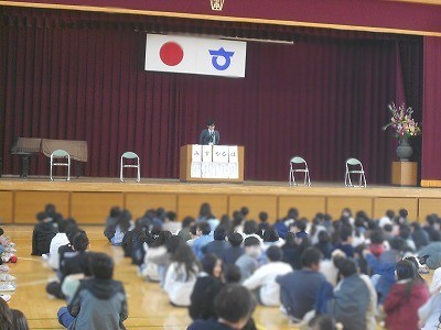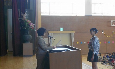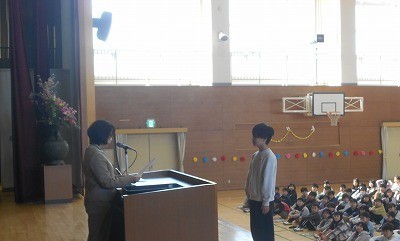 修了式を行いました。校長先生から、各学年の代表児童に修了証がわたされました。修了式のあと、2年生と4年生の代表児童が、この1年間の思い出や頑張ったことをスピーチしました。成長した様子がそれぞれの言葉で表現され、とても立派なスピーチでした。