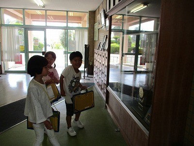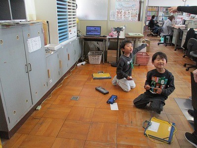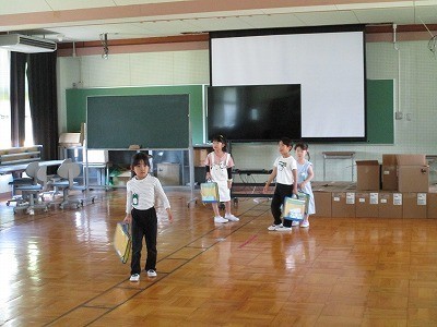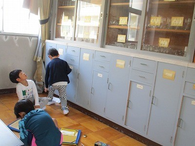 保健室や校長室、職員室など校内をまわり、誰がいるか見たり、教室と違うところをさがしたりしました。