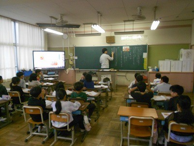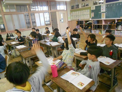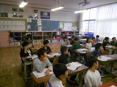 3年生の道徳です。家族での話を通して、みんなで協力し合うことについて考えています。