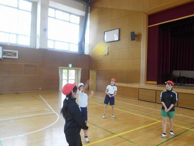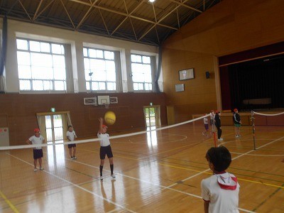 10月27日(月)ソフトバレー【6年】 公開日 2025/10/27 更新日 2025/10/27 学校日誌 6年生の体育です。ソフトバレーの学習を進めています。チームで練習したり、試合をしたりして楽しんでいます。