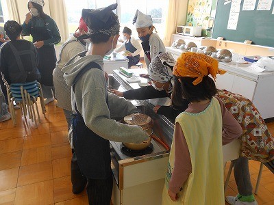 11月14日(金)調理実習【5年】 公開日 2025/11/19 更新日 2025/11/14 学校日誌 5年生の調理実習の様子です。お米を炊く実習です。多くの家庭では炊飯器でお米を炊いていると思いますが、今日はなべを使って炊きました。水分量や炊く時間もちょうど良く、美味しそうなお米が炊き上がりました。