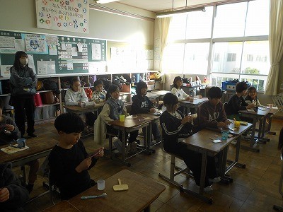 12月16日(火)歯みがき指導【4年】 公開日 2025/12/16 更新日 2025/12/16 学校日誌 4年生を対象に、歯みがき指導がありました。歯科衛生士さんをお招きして、歯の正しい磨き方を教えていただいたり、「フロス」の使い方を教えていただいたりしました。虫歯ゼロを目指して、これからもしっかりと歯を大切にしていきましょうね。