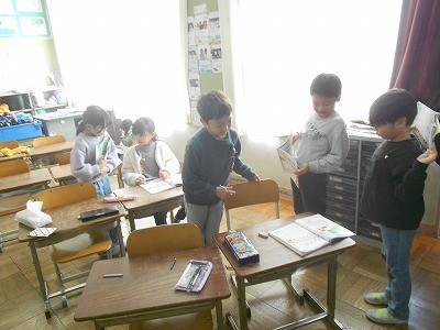 2年生の算数です。教科書の問題をどんなふうに考えて解いたか、友達と伝え合っています。同じ考え方の友達はいるかな?