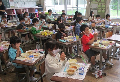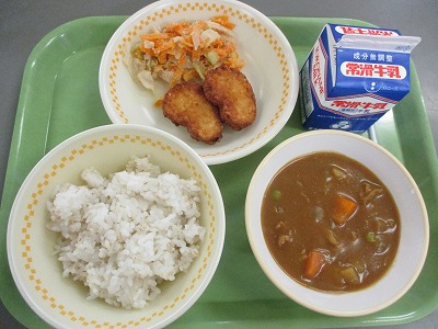 写真は2年生の様子です。気分の上がりにくい気候でしたが、カレーのおかげで笑顔が見られました。