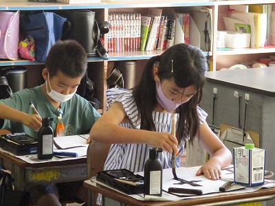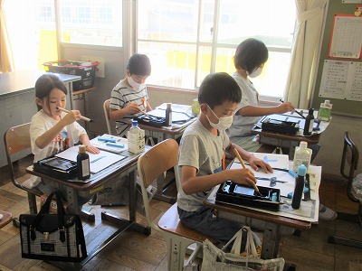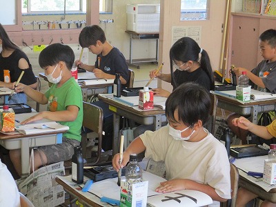 6/16(金)毛筆の授業にも慣れてきました【3年】 公開日 2023/06/16 更新日 2023/06/16 学校日誌 3年生になって、毛筆の授業が始まっています。姿勢、筆の持ち方や動かし方など、普段の鉛筆との違いにも、ずいぶん慣れてきました。堂々と、力強く書いています。