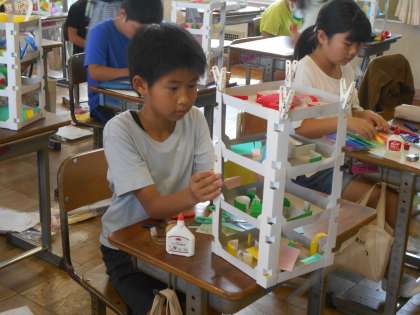 6/19(月)コロコロガーレ【4年】 公開日 2023/06/19 更新日 2023/06/19 学校日誌 4年生の図工で制作している「コロコロガーレ」がいよいよ完成間近になってきました。見ていると子どもたちの工夫やアイデアがいっぱい詰まっています。早くビー玉を転がしたいですね。
