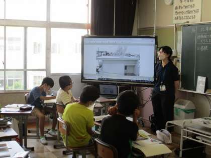 社会科の授業で、北国の生活の工夫について学習しました。屋根の形に着目して、なぜそのような形になっているのかを考えています。