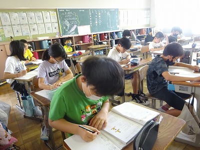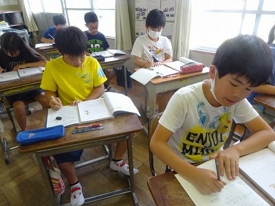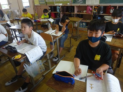 6月20日 □を使った式【5年】 公開日 2023/06/20 更新日 2023/06/20 学校日誌 5年生の算数では、□を用いた式について学習していました。分からない数を□として表すことで立式がしやすくなり、考えもまとまりやすくなります。少し難しい考え方ですが、練習問題を通して身につけたい考え方です。