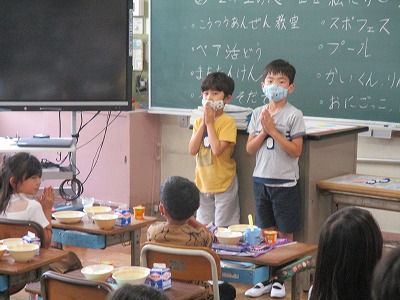 6月20日(火) 給食 公開日 2023/06/20 更新日 2023/06/20 学校日誌 <献立> ○ごはん ○牛乳 ○さわらの塩焼き ○煮豆 ○生揚げのそぼろ煮 ○野菜ゼリー プールでの水泳の授業が始まりだしました。プールは思っている以上にエネルギーを使います。暑さも加わり、疲れでなかなか食欲が出ないというときもあるかと思いますが、そんなときこそ、しっかりと食べることを心がけて夏バテしないようにしたいですね。 写真は2、3年生の様子です。