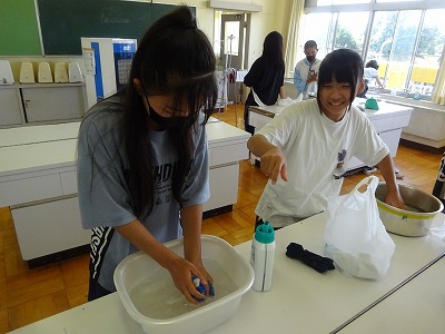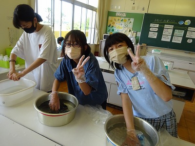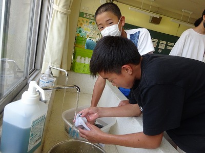7月6日 手洗いで洗濯【6年】 公開日 2023/07/06 更新日 2023/07/06 学校日誌 家庭科の学習で洗濯をしていました。昔のように、手洗いでの洗濯を体験しています。手洗いでの洗濯の大変さや、洗濯機のすごさがわかりますね。