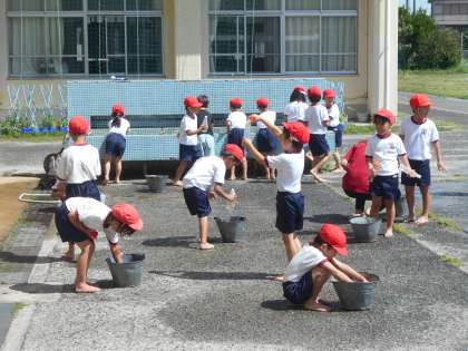 7/6(木)みずやつちであそぼう【1年】 公開日 2023/07/06 更新日 2023/07/06 学校日誌 1年生の生活科に「みずやつちであそぼう」という単元があります。運動場から子どもたちの楽しそうな声が聞こえ、見に行ってみるとまさに水で遊んでいるところでした。天気もよく、最高の水遊びになりました。