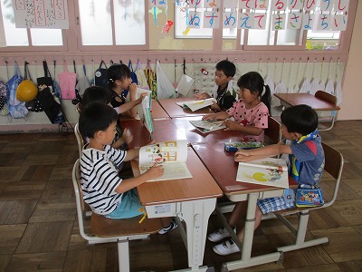 7/7(金)おおきな かぶ【1年】 公開日 2023/07/07 更新日 2023/07/07 学校日誌 国語の授業で、「おおきな かぶ」のお話を使って学習しています。登場人物の役割分担について、グループごとに相談しています。