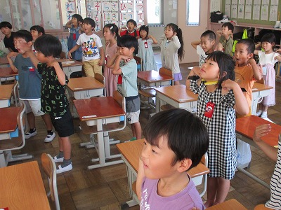 7/10(月)ドレミの歌【1年】 公開日 2023/07/10 更新日 2023/07/10 学校日誌 音楽の授業で、「ドレミの歌」を歌っていました。音階ごとに決められたポーズをとり、楽しそうに歌っています。