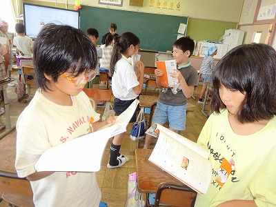 7月11日 国語×社会の学習【3年】 公開日 2023/07/11 更新日 2023/07/11 学校日誌 社会の時間に学習したスーパーマーケットの工夫を、国語学習の中で新聞形式にまとめていきます。どのようにまとめていくのかを、教科書を音読しながら確認していました。