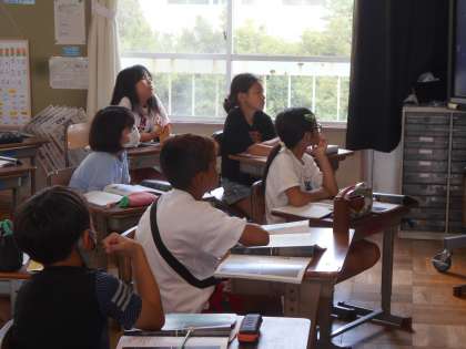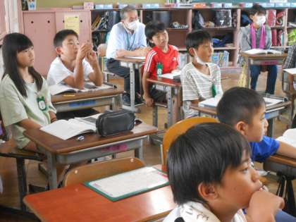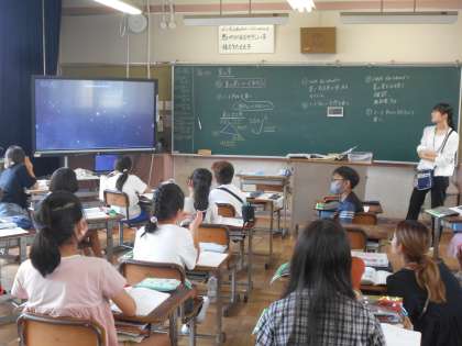4年生の理科では、夏の星について学習していました。映像を見て夏の大三角や星座を確認しました。さそり座のアンタレス、夜空で探してみてください。
