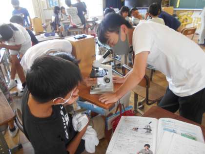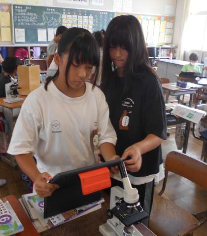 7/12(水)生き物と食べ物・空気・水【6年】 公開日 2023/07/12 更新日 2023/07/12 学校日誌 6年生は教室で理科の授業を行っていました。クラスメイトと顕微鏡をうまく使っていました。タブレットのカメラ機能を使って、接眼レンズから撮影しました。