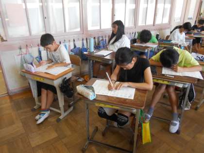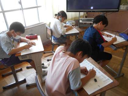 7/12(水)文字の組み立て方【5年】 公開日 2023/07/12 更新日 2023/07/12 学校日誌 5年生の書写は、硬筆の学習を行っていました。毛筆ではらいやはねなどを意識して書いたことを、硬筆に生かして丁寧に取り組んでいる姿が見られました。みんなの集中力にびっくりです。普段ノートに書く字にも生かせそうですね。