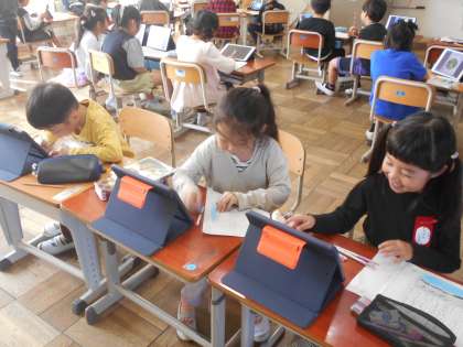 10/11(水)うみのかくれんぼ【1年】 公開日 2023/10/11 更新日 2023/10/11 学校日誌 1年生の国語では、海のかくれんぼ図鑑を作成していました。どのように作るのかを個別で考えたり、友達と協力して作ったりしています。自分で学び方を選べるのは、子どもたちにとって学習しやすいようです。