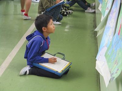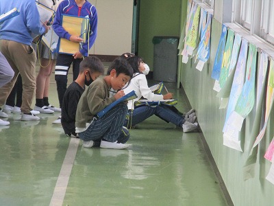 10/16(月)作品鑑賞会【4年】 公開日 2023/10/16 更新日 2023/10/16 学校日誌 読書感想画の鑑賞会を行いました。友達の作品をじっくり見て、よい点や工夫している点をまとめています。