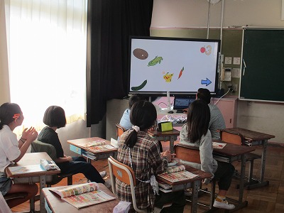 10/17(火)What do you want?【4年】 公開日 2023/10/17 更新日 2023/10/17 学校日誌 “What do you want?”のフレーズについて学習していました。電子黒板に示されている野菜や果物の中から、自分が欲しいものを英語で表現しました。とても楽しそうに学んでいます。