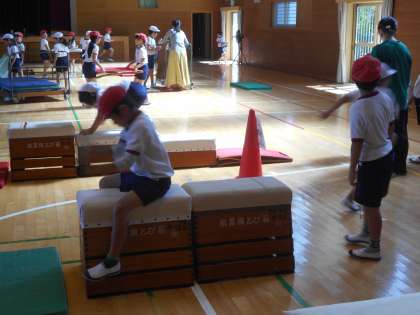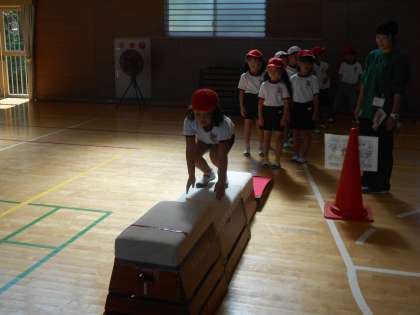 10/17(火)体つくり運動【1年】 公開日 2023/10/17 更新日 2023/10/17 学校日誌 1年生の体育では、跳び箱やマットを使って体つくり運動を行いました。跳び箱に慣れるために、いろいろな方法で乗り越えたり、飛び越えたりしました。
