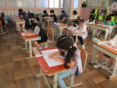10/18(水)カタカナの学習【1年】 公開日 2023/10/18 更新日 2023/10/18 学校日誌 カタカナの学習をしていました。今日は「ク」と「タ」です。空書きをして、「ク」「タ」を含む言葉を確認したら、書く練習です。丁寧に書いています。