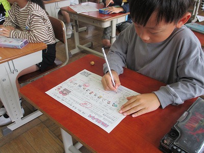 「げんきしらべ」の取り組みで、10月分の反省を書いています。 公開日 2023/10/20 更新日 2023/10/20 学校日誌 金曜の朝は「げんきしらべ」に取り組みます。20日は、タブレット入力と自分の健康目標に対しての反省を書いています。また「げんきファイル」に9月の分を綴じました。反省では、「ゲームの時間に気をつけてきているのでこれからも続けていきたい。」などそれぞれしっかりまとめていました。