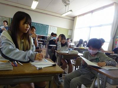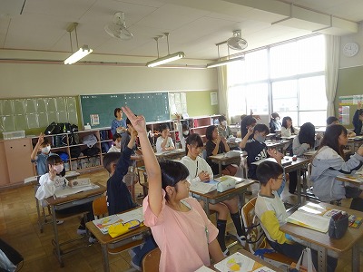 5年生算数の様子です。ある数が1/10、1/100、1/1000と変化するとき、小数点の位置はどのように変化するか学習していました。子どもたちも理解したようで、スラスラと問題を解いていました。