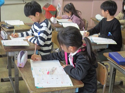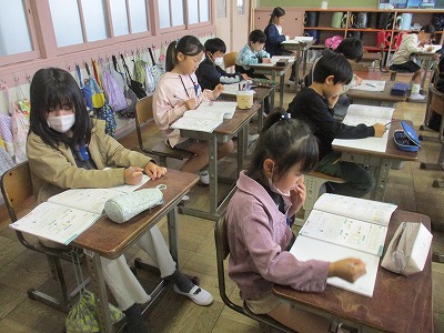 4/16(火)かけ算を使って【3年】 公開日 2024/04/16 更新日 2024/04/16 学校日誌 6×□=24の□に当てはまる数を考える問題に取り組みました。この問題解決での考え方は、3年生で学習する「わり算」につながります。練習問題を解いたら、先生に確認をしてもらっています。