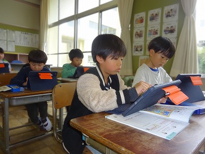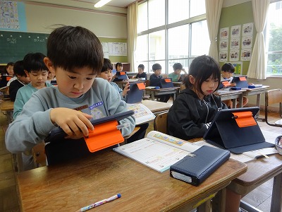 2年生の算数です。新しくなったデジタル教科書を使って、ひょうやグラフについて学習をしていました。新機能もあるようで、子どもたちも先生も興味な様子でした。