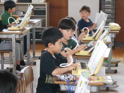 4/18(木)かえるのがっしょう【2年】 公開日 2024/04/18 更新日 2024/04/18 学校日誌 音楽室から元気な声が聞こえてきました。2年生の音楽「かえるのがっしょう」です。今日は、輪唱や鍵盤ハーモニカで「かえるのがっしょう」を楽しく表現していました。