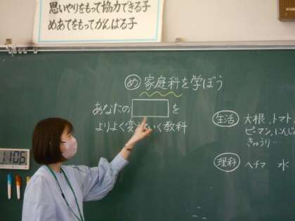 4/19(金)家庭科を学ぼう 公開日 2024/04/19 更新日 2024/04/19 学校日誌 5年生からは、新しく「家庭科」が始まりますね。先生からクイズが出ていました。家庭科は○○をよりよくする教科です。○○に入る言葉は何でしょう?子どもたちは真剣に考えていましたが、すぐに正解を答えていました。みなさんは分かりますか? ※正解:「生活」